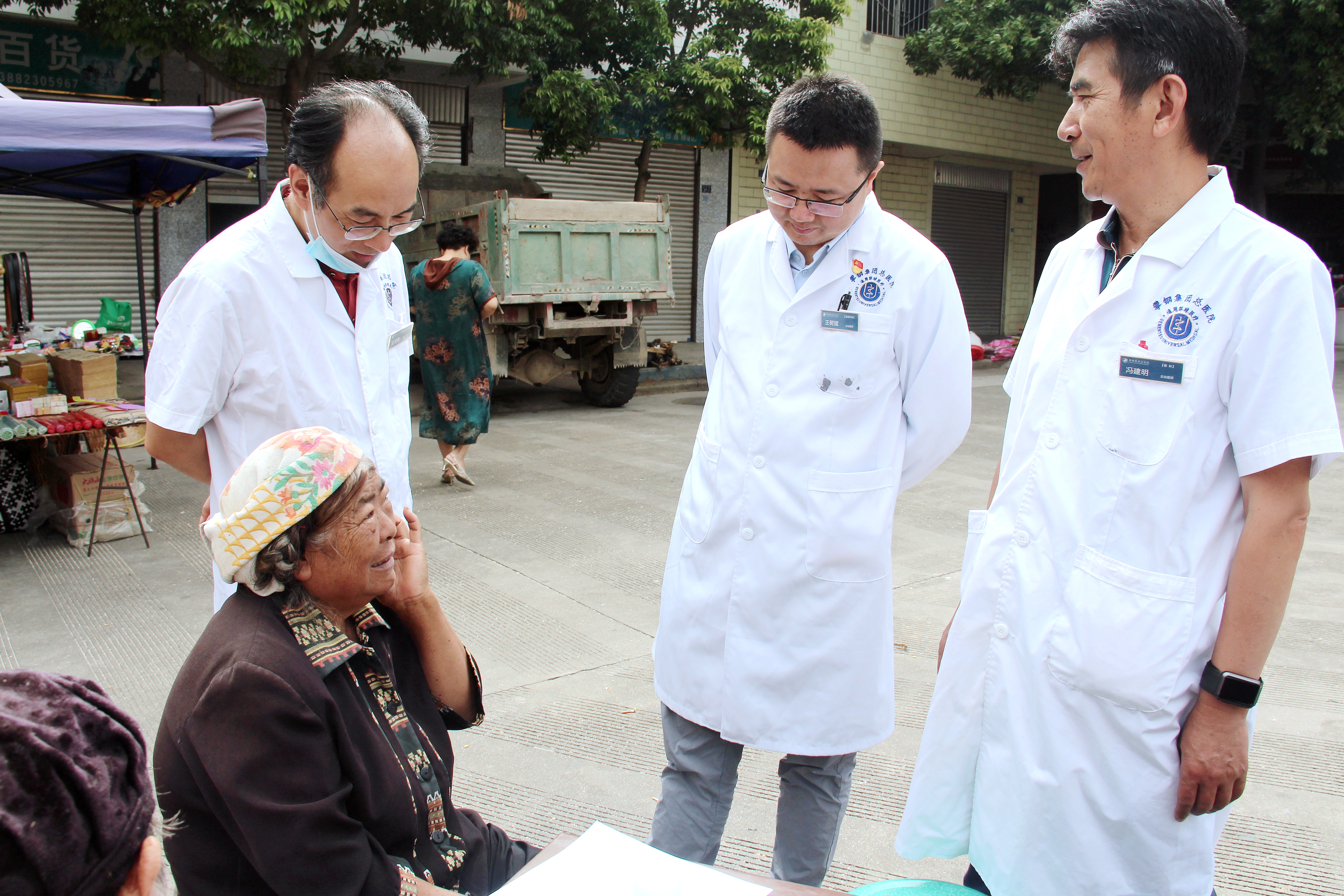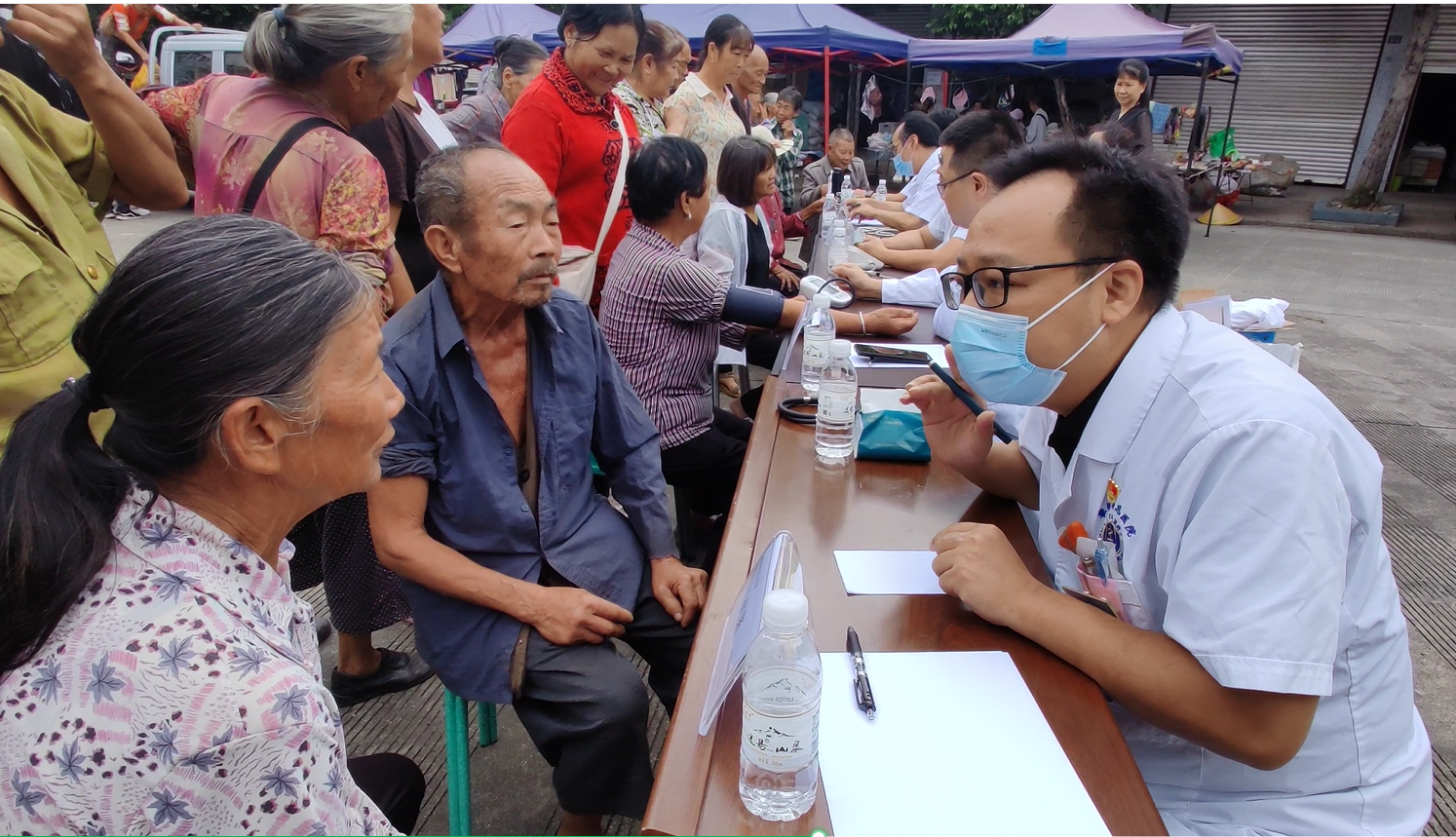 前期,鄉(xiāng)政府對(duì)此次健康義診進(jìn)行了廣泛宣傳,所以義診還沒開始,已經(jīng)有不少村民早早等候在集市中提前搭好的義診區(qū)。專家們馬上進(jìn)入工作狀態(tài),聽診、觸診、健康科普與宣教……